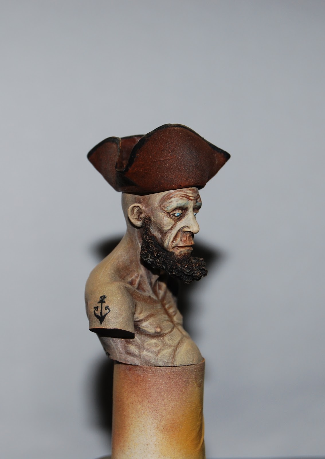 Pues un bustico muy majo,en principio como tu dices le falta todabia,pero lo que llebas me gusta,a un consejo recuerda que estos tios al estar en el sol estan como se dice morenitos.metele algun naranja,A no ser que le quieras pintar enfermo como esos piratas con escorbuto y eso ¿?